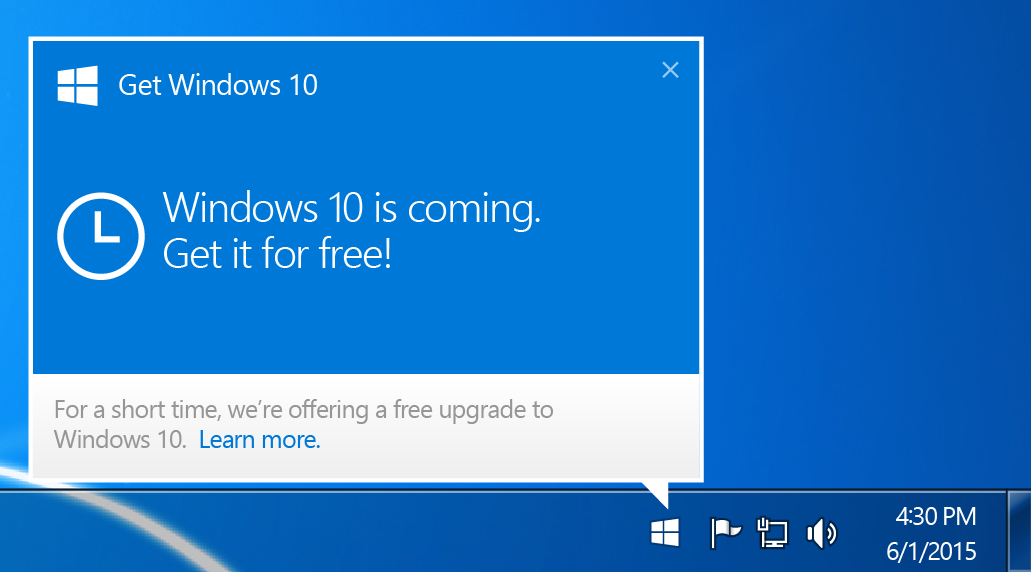 You may have noticed this kind of "Windows 10" icon and message that pops up quite often: